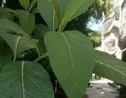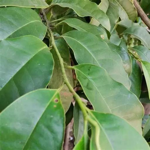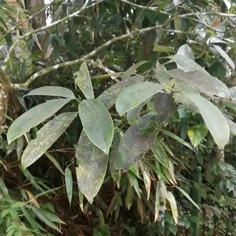 叶薄革质,倒卵形,狭倒卵形或长圆状倒卵形,长 6.5-15(16)厘米,宽3.5-6.5(7)厘米,先端骤狭短渐尖,或短渐尖,尖头钝,基部楔形或阔楔形,上面深绿色,有光泽,侧脉每边9-12(15)条,网脉稀疏;叶柄长1.5-2.5厘米,有明显托叶痕,上面具张开的沟,嫩时被微柔毛,后脱落无毛。