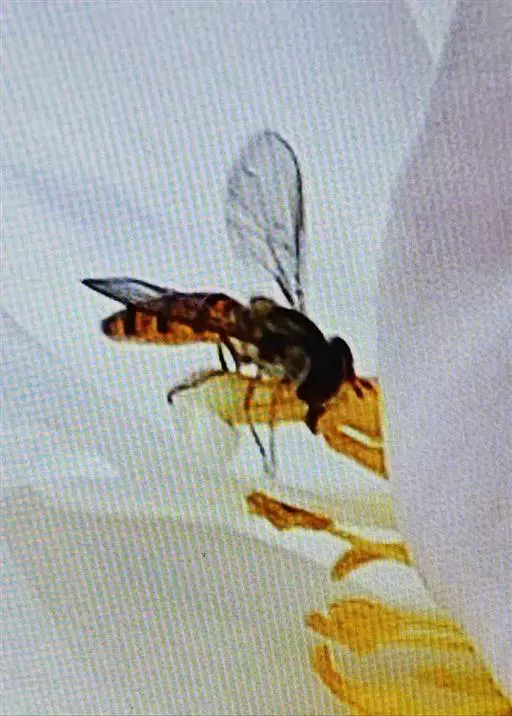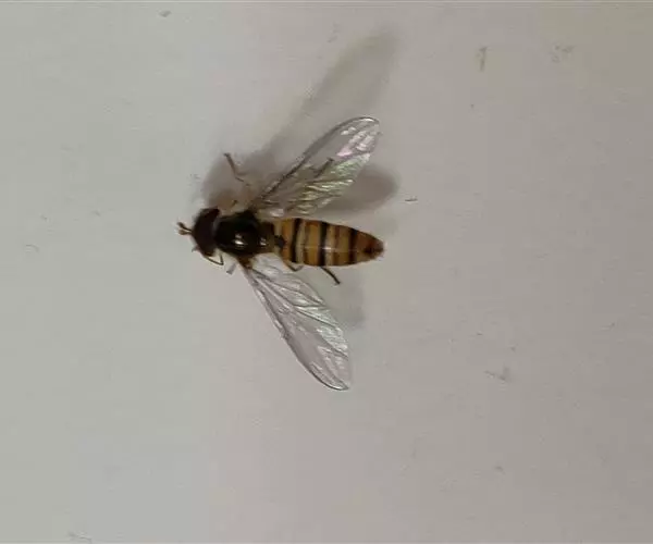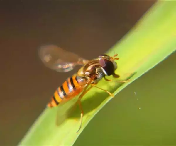 黑带食蚜蝇 体长7-11毫米,翅长6.50-9.50毫米。头黑色,被黑色短毛.头顶宽约为头宽的1/7.单眼区后方密覆黄粉。额大部分黑色覆黄粉,背较长黑毛,端部1/4左右黄色。腹部第五节背片近端部有一长短不定的黑横带,其中央可前伸或与近基部的黑斑相连。