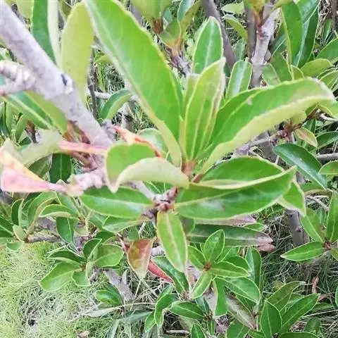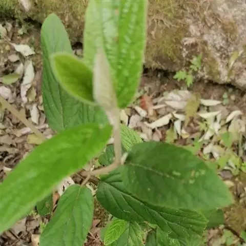 常绿灌木;高可达4米;当年小枝淡黄色或灰黄色,四角状,散生簇状短糙毛或近无毛,二年生小枝紫褐色或灰褐色,近圆柱状。叶革质,干后上面变黑色至黑褐色或灰黑色,椭圆形至椭圆状卵形,较少宽卵形,有时矩圆形或倒披针形,长4-12(-16)厘米,顶端尖或短渐尖,基部渐狭至钝形,有时近圆形,全缘或上部至近顶部具少数浅齿,上面有光泽,下面全面有微细褐色腺点,中脉及侧脉常有疏伏毛,侧脉3-4(-5)对,近缘前互相网结或达至齿端,最下一对伸长而多少呈离基3出脉状,上面深凹陷,下面明显凸起;叶柄带红紫色,长5-15毫米,无毛或散生少数簇状笔。