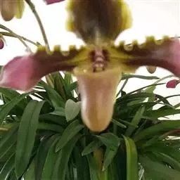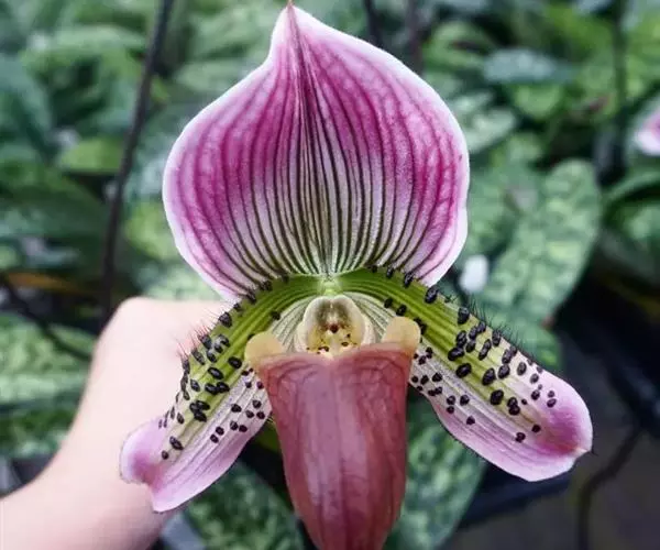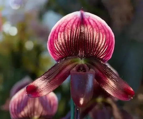 兜兰花比较雅致,色彩比较庄重,色及带有不规则斑点或条纹。花瓣较厚,花朵开放期比较长。属观赏类花草。