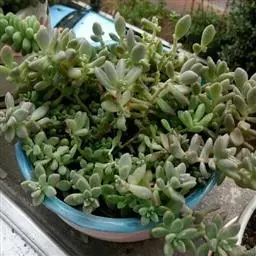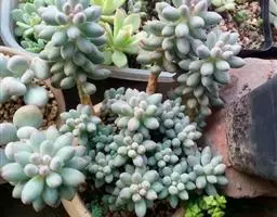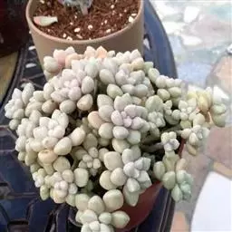 蓝豆是景天科、风车草属的多年生植物,多肉植物。植株叶片覆白粉,呈淡蓝色,…