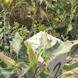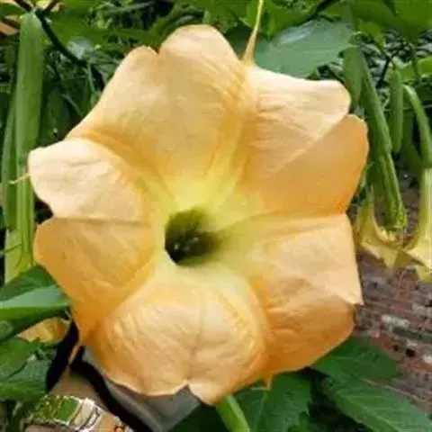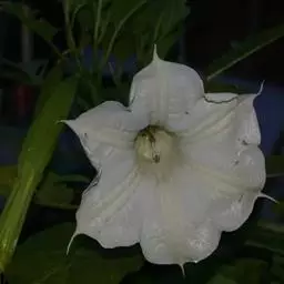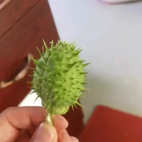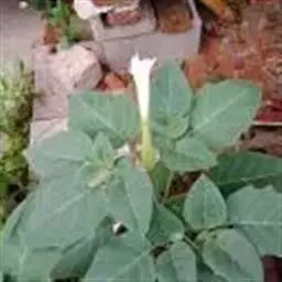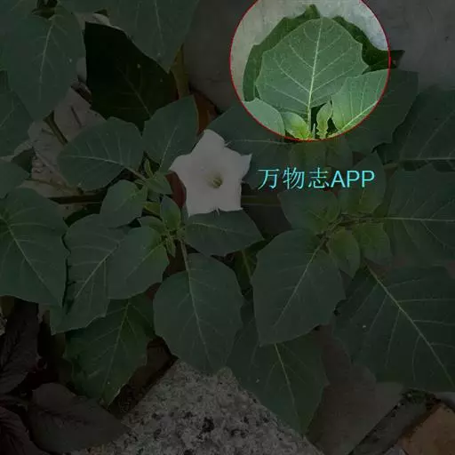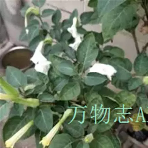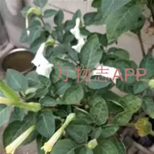 白花曼陀罗(学名:Datura metelL)是白花曼陀罗属植物,一年生草本植物,全株近于无毛。茎直立,圆柱形,高30~100cm,基部木质化,上部呈义状分枝。叶互生,上部的叶近于对生;叶柄长2~6cm,表面被疏短毛;叶片卵形、长卵形或心形,长8~14cm,宽6~9cm,先端渐尖或锐尖,基部不对称,全缘或具三角状短齿,两面无毛;叶脉背面隆起。花单生于叶胶或上部分枝间;花梗短,直立或斜伸,被白色短柔毛;花萼筒状,长4~6cm,淡黄绿色,称端5裂,裂片三角形,先端尖。功效:清火解毒,消肿止痛,杀虫止痒。