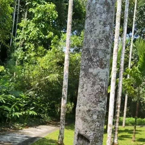 望天树是大乔木,高40(-60)米,胸径60-150厘米;树皮灰色或棕褐色,树干上部的为浅纵裂,下部呈块状剥落。幼枝被鳞片状的茸毛,具圆形皮孔。