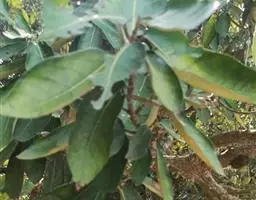 叶革质,椭圆形或椭圆状披针形,长6-20厘米,宽3-8厘米,先端渐尖,基部圆形,侧脉羽状,14-19对,在下面明显突起,网脉明显,被鳞片状毛或绒毛;叶柄长1-3厘米,密被毛;托叶纸质,早落,卵形,基部抱茎,具纵脉5-7条,被鳞片状毛或茸毛。