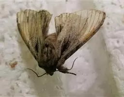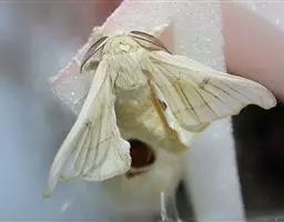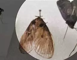 雌蛾与雄蛾的主要区别是:整体颜色比雄蛾为深;体大肥硕;触角窄;宽约2mm;腹部末端开口处椭圆形,长约6mm,宽约3~5mm;产卵器明显可见,圆形,其上有淡黄色毛。