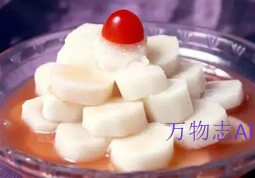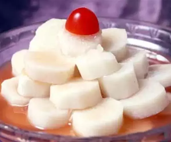 3、将山药捞出后凉凉,在冰糖水中浸泡1小时左右;