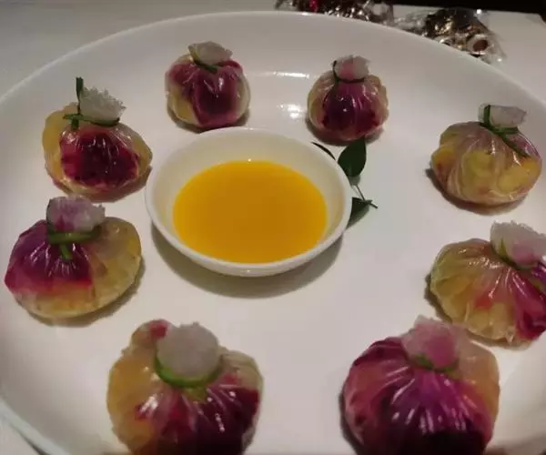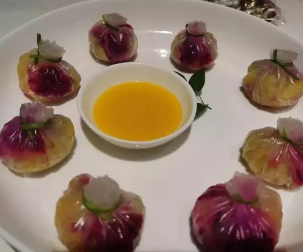 7、最后将山药泥按个人喜好整出形状,淋上蓝莓酱即可。