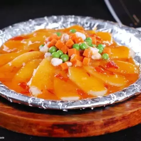 6、 如果喜欢丰富的口味,除了山药之外,还可以增加些芋头,将山药和芋头同蒸,蒸好后一起压成泥,用来做这道菜味道更好。