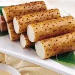 块茎肉贸肥厚,略呈圆柱形,垂直生长,长可达1米,直径2~7厘米,外皮灰褐色,生有须根。