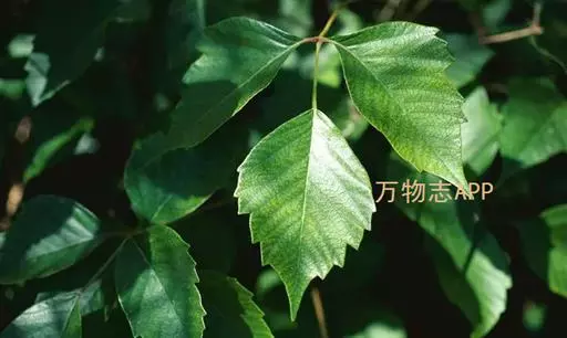 叶纸质,3小叶组成的复叶;小叶椭圆形或长圆椭圆形,长6-12厘米,宽3-5厘米,先端渐尖,基部楔形,阔楔形或近于圆形,全缘或近先端部分有稀疏的3-5个钝锯齿,顶生小叶的小叶柄长约1厘米,侧生小叶的小叶柄长3-5毫米,有短柔毛;嫩时两面无毛或有短柔毛,在下面沿叶脉被毛更密,渐老时无毛,主脉和1113对侧脉均在下面较在上面显著;叶柄长4-8厘米,有短柔毛。