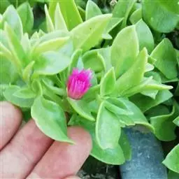 冰叶日中花(学名:Mesembryanthemum crystallinum Linn.)是番杏科、日中花属的一年生或二年生草本。茎匍匐,叶互生,扁平,肉质,卵形或长匙形,紧抱茎,有发亮颗粒。花单个腋生,几无花梗;花瓣多数,比萼片长,花白色或浅玫瑰红色,果实为蒴果。
