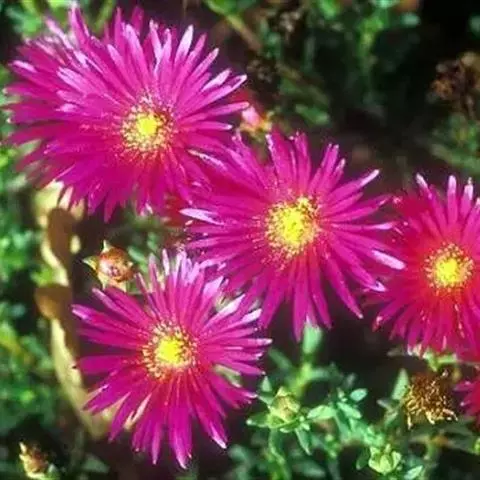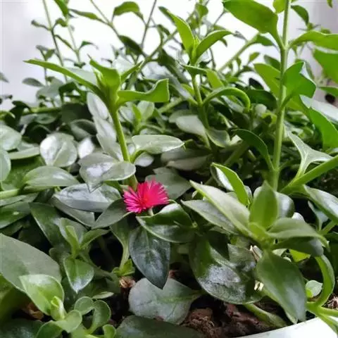冰叶日中花叶形奇特,花色艳丽,茎叶表面上还有一粒粒的泡状小隆起,形似水晶一般,十分美丽,具有一定的观赏价值。
