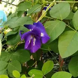 蝶豆(学名:Clitoria ternatea Linn.)是豆科蝶豆属植物。攀援状草质藤本。茎、小枝细弱,被脱落性贴伏短柔毛。叶长2.5-5厘米;托叶小,线形,长2-5毫米;叶柄长1.5-3厘米。花大,单朵腋生;苞片2,披针形。荚果长5-11厘米,宽约1厘米;种子长圆形,长约6毫米,宽约4毫米,黑色,具明显种阜。花、果期7-11月。
