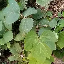 攀援状草质藤本。茎、小枝细弱,被脱落性贴伏短柔毛。叶长2.5-5厘米;托叶小,线形,长2-5毫米;叶柄长1.5-3厘米;总叶轴上面具细沟纹;小叶5-7,但通常为5,薄纸质或近膜质,宽椭圆形或有时近卵形,长2.5-5厘米.宽1.5-3.5厘米,先端钝,微凹,常具细微的小凸尖,基部钝,两面疏被贴伏的短柔毛或有时无毛,干后带绿色或绿褐色;小托叶小,刚毛状;小叶柄长1-2毫米,和叶轴均被短柔毛。