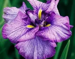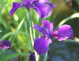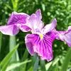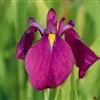 花菖蒲(学名:Iris ensata var. hortensis Makino et Nemoto):是玉蝉花的变种。多年生宿根挺水型水生花卉。根状茎短而粗,须根多并有纤维状枯叶梢,叶基生,线形,叶中脉凸起,两侧脉较平整。花葶直立并伴有退化叶1-3枚。花大直径可达15厘米。外轮三片花瓣呈椭圆形至倒卵形,中部有黄斑和紫纹,立瓣狭倒披针形。花柱分枝三条,花瓣状,顶端二裂。蒴果长圆形,有棱,种皮褐黑色。花期6-7月,果期8-9月。以日本栽培最盛,己育出一百多个品种。