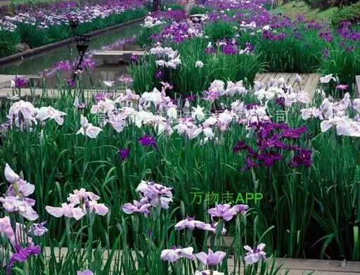 花菖蒲在湿地公园的配置中,常成片群植,在碧波荡漾中,彩蝶飞舞,风景格外秀丽。在河岸浅谈与黄菖蒲、路易斯安娜鸢尾,可使花期前后相续2个月左右,花菖蒲叶片比较柔弱,在庭院水池岸边,水塘石隙点缀数丛,绿叶衬托的花冠,更显得婀娜多姿。