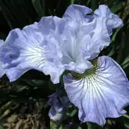 该变种(花菖蒲)为园艺变种,品种甚多,植物的营养体、花型及颜色因品种而异。叶宽条形,长50-80厘米,宽1-1.8厘米,中脉明显而突出。花茎高约1米,直径5-8毫米;苞片近革质,脉平行,明显而突出,顶端钝或短渐尖;花的颜色由白色至暗紫色,斑点及花纹变化甚大,单瓣以至重瓣。性喜潮湿,多栽于河、湖、池塘边,或盆栽。花期6-7月,果期8-9月。
