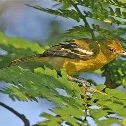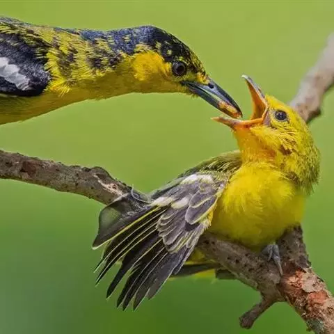 黑翅雀鹎:体重14-19克,体长11.5-16厘米。是树栖性绿色小鸟,外形与叶鹎相似,下体黄色。…