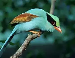 蓝绿鹊:中型鸟类,共有5个亚种。体长36-38厘米。尾长,嘴、脚红色。通体羽色主要为草绿色,…