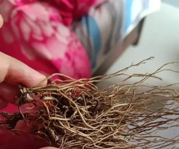 根茎繁殖:细辛地下根状茎横生,节明显。在秋后采收时挖出根茎,选生长健壮、无病虫害的粗壮根茎,截成5~6cm的小段,每段需带有2~3个芽苞和10~20条长须根,进行分根繁殖。按行距15cm开沟,株距10cm一段接一段地埋入沟内,并覆细土厚5cm,遇天旱时,需及时浇水。