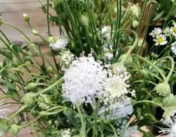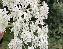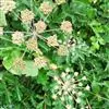复伞形花序顶生,密生浓密的长柔毛,径3-6厘米,花序梗有时分枝,长2-6厘米;伞辐8-16,不等长,长1-3厘米;无总苞片;小总苞数片,线状披针形,边缘及背部密被柔毛;小伞形花序有花,15-20,花白色;萼齿5,卵状披针形,长0.5-1毫米,被柔毛;花瓣白色或带堇色;花柱基短圆锥形。