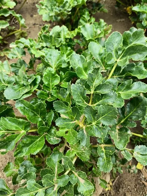栽培 出苗后及时中耕除草保墒,以利蹲苗。因珊瑚菜是密植作物,随着幼苗长高,行距小,茎易断,不宜用锄中耕,可用铁耙松土或拔草。苗有3片左右真叶,要间苗,要成三角形留形,株距0.7米左右;小苗5米高时间苗,株距3-5米,过稀根易分杈,过密苗木生长弱,易染病害。春季干旱酌情浇水,保持地面湿润,生长后期地面忌积水。苗高10米时追施1次清淡人畜粪水。7月初以施磷、钾肥为主,促使根的生长。施肥后浇1次水。苗期现蕾及时摘除。