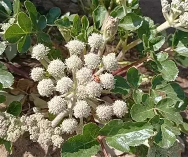 多年生草本,全株被白色柔毛。根细长,圆柱形或纺锤形,长20-70厘米,径0.5-1.5厘米,表面黄 珊瑚菜 白色。茎露于地面部分较短,分枝,地下部分伸长。叶多数基生,厚质,有长柄,叶柄长5-15厘米;叶片轮廓呈圆卵形至长圆状卵形,三出式分裂至三出式二回羽状分裂,末回裂片倒卵形至卵圆形,长1-6厘米,宽0.8-3.5厘米,顶端圆形至尖锐,基部楔形至截形,边缘有缺刻状锯齿,齿边缘为白色软骨质;叶柄和叶脉上有细微硬毛;茎生叶与基生叶相似,叶柄基部逐渐膨大成鞘状,有时茎生叶退化成鞘状。
