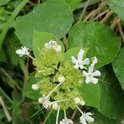 碰碰香多分枝,全株被有细密的白色绒毛,肉质叶交互对生,茎细瘦,小花白色。