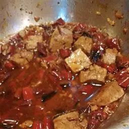 2、豆腐用热油炸至金黄色,放进卤水里浸煮10分钟。