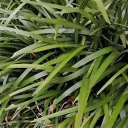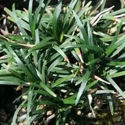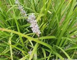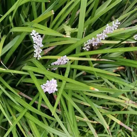 玉龙草,具有块根,根系发达,根长可及20公分以上,乳白色略粗,几无茎,植株矮小,簇生成半球团状,高约10公分。 单叶,丛生,叶片长10~20公分,宽0.2~0.3公分,狭线形,叶基锐,叶尖钝,叶缘粗糙,墨绿色,上下表面光滑,下表面多少带白粉状,脉5~7条。 总状花序,每苞花10朵,花茎直立,淡紫色至白色。 蒴果,径约0.5公分,种子深蓝色。生长及分生迅速,栽植地面可迅速长成一片浓密加地毡状的草皮,对水土保持有特别优良之效果。耐阴性强、且较一般草皮耐践踏,是极佳之地被植材。