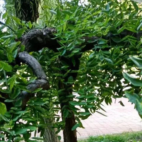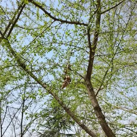 落叶乔木,高达10余米;树皮灰褐色,纵裂。分枝广展,小枝有叶痕。