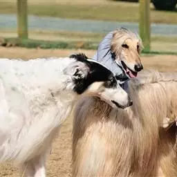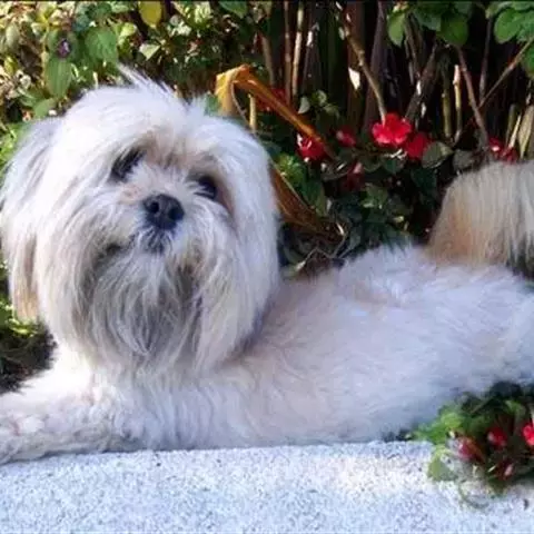 阿富汗猎犬全身披丝绢状的长毛,毛色鲜艳,呈多种颜色,背中线附近毛短,…