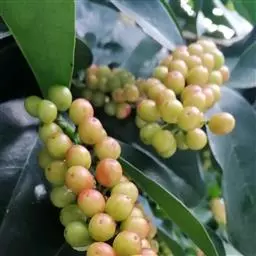 浆果状蒴果卵状或近圆球状,长2-2.5厘米,直径1.5-2厘米,黄色后变紫红色,不开裂,内有种子1-3颗;种子扁椭圆形或近圆形,长1-1.3厘米。花期3-4月,果期6-10月。 [2-3]