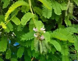 乔木;树皮灰色,粗糙,厚而深裂;分枝多,平展。枝被白色短柔毛。羽状复叶长12-15厘米;托叶披针形,早落;小叶1-2对,近革质,近圆形或有时菱状倒卵形,长3.5-6厘米,先端圆,具短尾尖,尖头长5-10毫米,嫩时两面淡绿色,被白色伏贴柔毛,成长时无毛,有光泽。