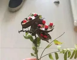 荚果线状长圆形至带状,长4-8厘米,6-12毫米,果瓣薄革质,干时淡褐色,无毛,对种子部分略具网纹,有种子12 (-3)粒;种子肾形,扁平。花期3-4月。