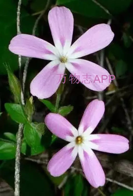 花数朵生枝顶,成简单的聚伞花序,花梗纤细,长0.7-1cm,密被短柔毛;花萼长6-7mm,外面密被短柔毛,萼齿线状披针形,与萼筒近等长;花冠高脚碟状,淡红、紫色或白色,长约2cm,裂片倒卵形,凹头,短于花冠管,长约6mm。