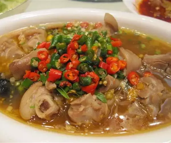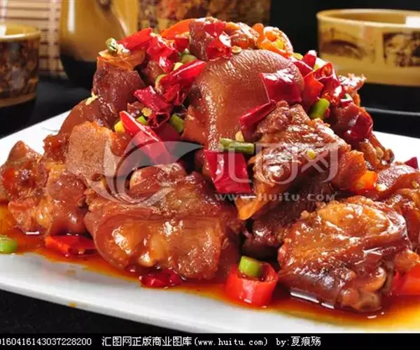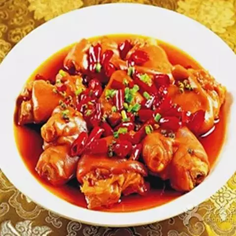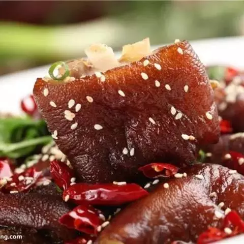 香辣美容蹄是一道荤菜菜肴名称,肉香味美,色泽诱人,令人垂涎。
