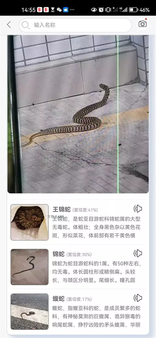 王锦蛇 成体王锦蛇作重点讲述:一般体型进1.5以上(对于王锦蛇来说很轻松)。体重500g以上的王锦,性格多偏向于懒散、爱盘踞休息。活动量明显减少,喜爱泡水,触摸反应同样较大。这里着重说一下王锦捕食习性:分 触觉,视觉,嗅觉三种模式。据本作观察,大部分王锦蛇在捕食活体小白时,多利用视觉与触觉。在接受死食后,给予死食在箱内,多靠嗅觉。在日常饲养管理中,王锦蛇视觉极其敏感,对任何动作都会做出反应。(苗与亚成更为明显,同所有有性格的蛇类一样)接近王锦蛇的方法十分简单,前提是需要了解该蛇性格习惯。蛇类的攻击范围每个饲养过的玩家应该都有一定了解。本作从未觉得蛇凶是负面事情,王锦甚至比王蛇类更有智商和能动性,王蛇类凶多为神经质,王锦有规律且有方法可循。总之,在我饲养的王锦蛇中 还未遇到过无法控制的个体。一般来说,迅速接近至头部上方,反手托住蛇颈及头部,随之另一只手将腹部拿起,即可随意上手,避免在蛇头前方引诱其自我防卫,基本无攻击性。