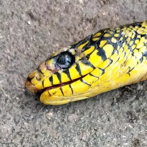 原色王锦蛇(大部分)头部有黑纹“王”字,多数体表呈黑黄白三色环纹,鳞间末多黄色,触摸有肌肉感且粗糙紧实。多有后1/3无纹路呈星点至尾尖。