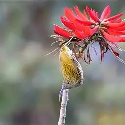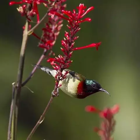 纹背捕蛛鸟:为太阳鸟科捕蛛鸟属的鸟类。是太阳鸟科中体型较大的一种,体重25-45克,…