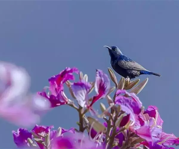 紫色蜜鸟为太阳鸟科花蜜鸟属的鸟类。分布于阿拉伯、伊朗、阿富汗、印度、尼泊尔、锡金、孟加拉、中南半岛、斯里兰卡以及中国大陆的云南等地,多栖息于海拔约950米以下的常绿阔叶林或村寨附近的丛林间。该物种的模式产地在印度的Gurgaon。
