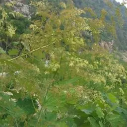 博落回 R. Br.)是罂粟科博落回属直立草本,高可达4米。茎光滑绿色;叶片宽卵形或近圆形,…