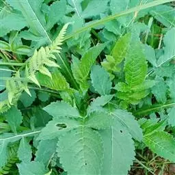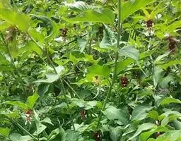 穿心莛子藨(Triosteum himalayanum Wall)忍冬科,莛子藨属,多年生草本,高30~50厘米,全体被粗毛。根粗壮,圆锥形,分叉,暗褐色。茎直立,单生。叶对生,无柄,基部愈合为一体,而茎贯穿中心;叶倒卵形,长10~20厘米,宽6~13厘米,先端钝或急尖,全缘或呈波状。穗状花序顶生;花淡紫色;萼管卵形,裂片5,宿存;花冠狭漏斗状,裂片5,不等;雄蕊5,花药内藏;子房下位。浆果卵形;具种子3粒。