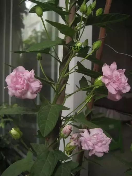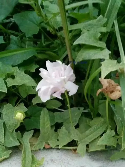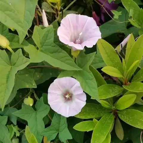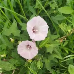 蔓生或攀援,高数米,无毛至疏生短柔毛,叶狭三角形到长圆形、无毛到疏生短柔毛。花冠粉红色,偶见白色,花期8月。