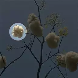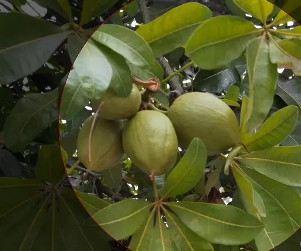 蒴果近梨形,长9-10厘米,直径4-6厘米,果皮厚,木质,几黄褐色,外面无毛,内面密被长绵毛,开裂,每室种子多数。种子大,不规则的梯状楔形,长2-2.5厘米,宽1-1.5厘米,