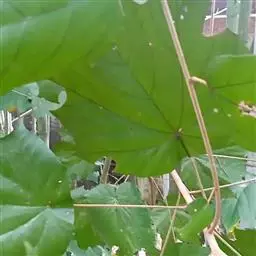 插条采集选择生长健壮、无病虫害、性状优良的当年生半木质化枝条,在阴天或无风的早晨剪取,剪留长度为6至7厘米,下切口为马蹄形,位于叶或腋芽下,切口要光滑,利于形成愈合组织。一般每个插条带2个掌叶。注意不要伤及叶片,以利光合作用。