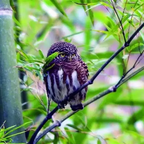 横斑腹小鸮:是鸱鸮科、小鸮属的一种鸟类。体长20厘米左右。面盘不明显,没有耳羽簇,皱领也不显著。…