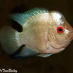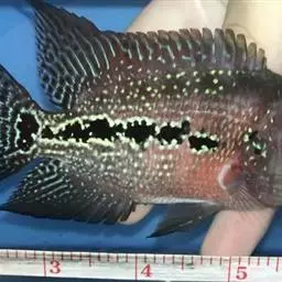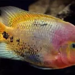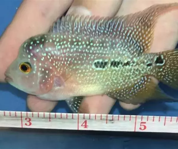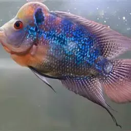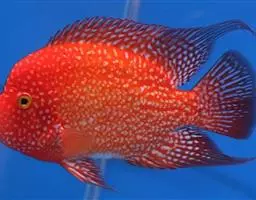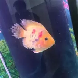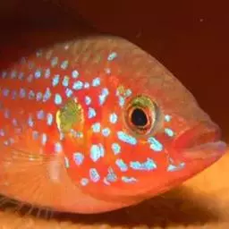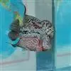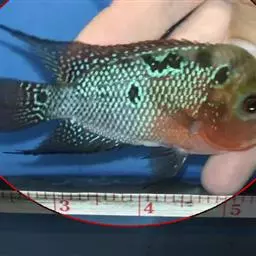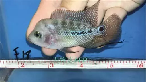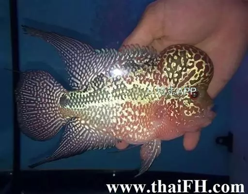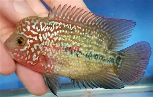 罗汉鱼 德萨斯罗汉鱼是这些品系中最好辨认的,德萨斯是在原种大型鲷鱼(德州豹)杂交改良而来的豹系金花罗汉鱼。这一类罗汉鱼品种现如今在市场上并不多见,而且价格也较高。德萨斯品系鱼体长一般在20~30厘米,额珠较低有前探趋势,无额斑;平眼,眼色以蓝色、金色为主;平嘴;背鳍、臀鳍不拉丝或有短小拉丝;后三鳍形成的夹角较小,尾鳍呈扇形;体形比较扁,体幅宽阔,椭圆形,背部较高,有青色小点和斑纹。性成熟时则由青色斑点变为红色珍珠斑纹,闪闪发光,十分耀眼。