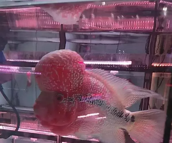 罗汉鱼拥有宽阔的体型,身体侧扁,体长与体高十分相近,额珠高耸饱满,眼睛分明,眼圈朱赤,发病率低,易饲养。罗汉鱼对水质的要求中性偏碱,pH值6.0~7.8;适合水温是28~30℃,最适水温是28℃。罗汉鱼食性颇广,天然饲料、人工饲料均可用于投喂,一般用丰年虾、虾肉、鱼、血虫、水蚯蚓等喂养。需3~5d换水1次,每次换水量约为1/3。罗汉鱼属于观赏鱼中的大型鱼类,体长可达50~60cm,重量可达2kg,并且该鱼种具有很强的领域观念,在混合养殖中颇具霸气、好打斗,适合单独饲养。