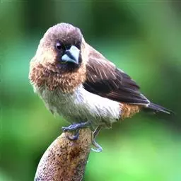 栗腹文鸟:小型鸟类,体长10-12厘米。嘴蓝灰色,基部粗厚,先端尖、呈圆锥状, 脚亦为蓝灰色,整个…
